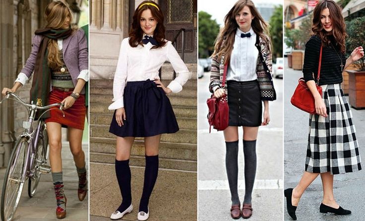 Since the whole preppy style emerged from schoolgirl fashion, a basic flowy chiffon shirt with a checked skirt literally is the poster for preppy fashion. Also, not to mention, this look screams BLAIR WALDORF, Queen of Preppy Chic!